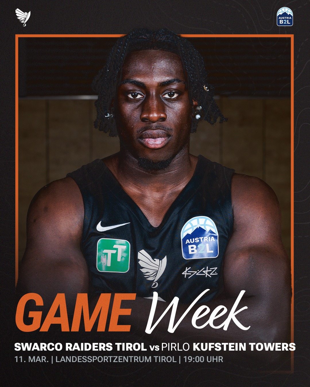 Die SWARCO Raiders Tirol empfangen die Pirlo Kufstein Towers zum Nachholspieltag im Landessportzentrum Tirol.