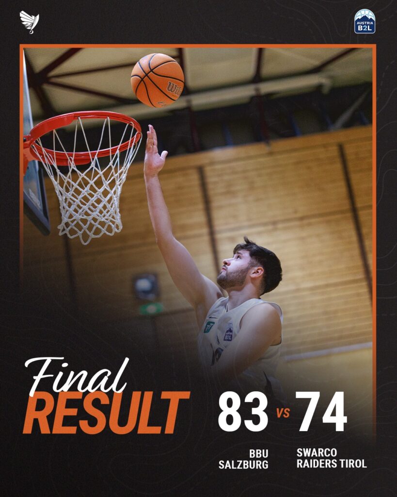 Eine lange Zeit ausgeglichene Partie wird erst im letzten Viertel entschieden. Wir müssen uns BBU Salzburg schlussendlich mit 74:83 geschlagen geben.